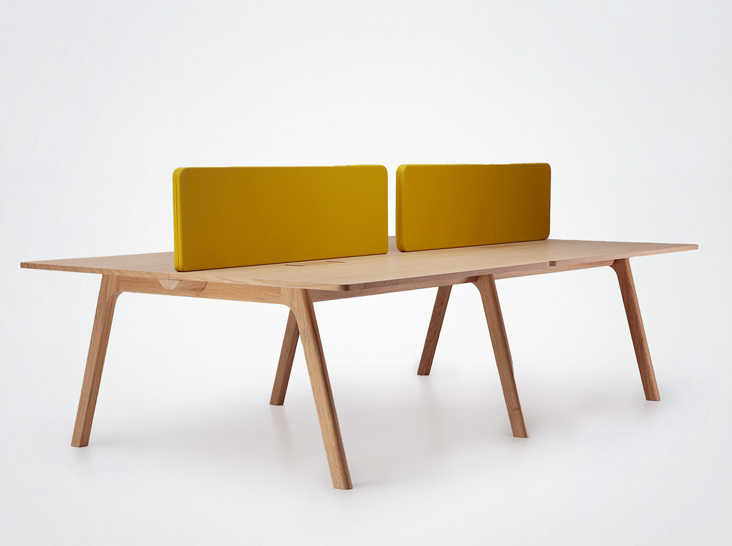 Plateau bois massif (20 mm en bois massif 3 plis), stratifié (0,8 mm) ou Fenix (1,2 mm): feuille collée sur mdf de 22 mm avec alèses en bois massif, contrebalancement blanc.