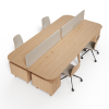 au plateau du bureau, poignées en bois massif. Coulisses équipés de la fonction Silent System permettant un ralentissement en fin