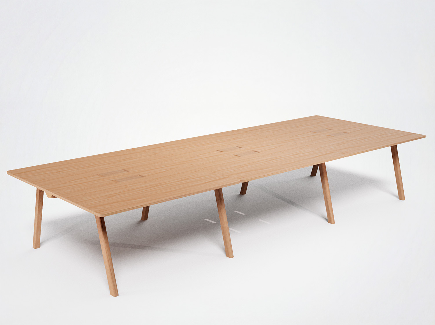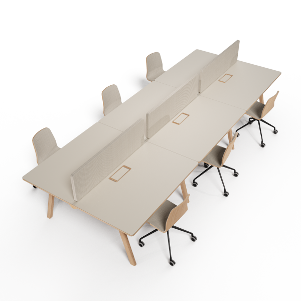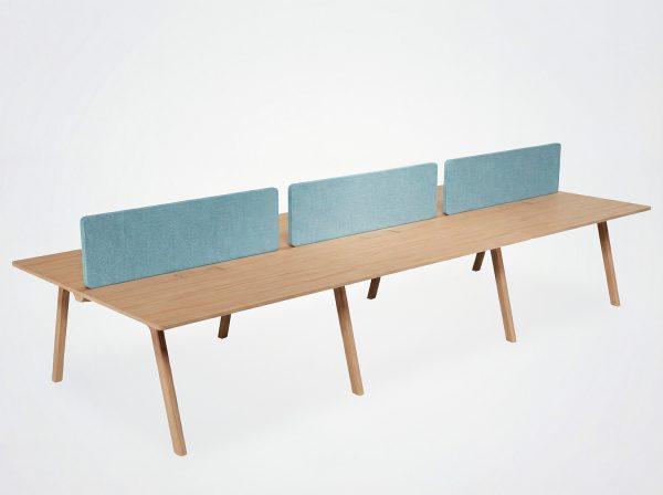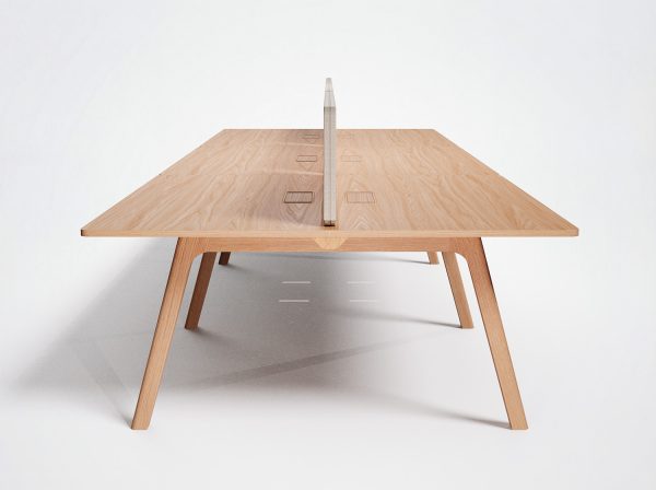 Plateau bois massif (20 mm en bois massif 3 plis), stratifié (0,8 mm) ou Fenix (1,2 mm): feuille collée sur mdf de 22 mm avec alèses en bois massif, contrebalancement blanc.
