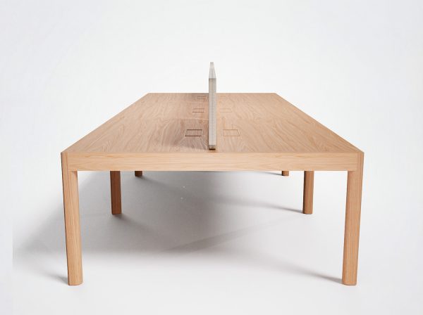 Plateau bois (20 mm en bois massif 3 plis), stratifié (0,8 mm) ou Fenix (1,2 mm): Feuille collée sur mdf de 22 mm avec alèses en bois massif, contrebalancement blanc.