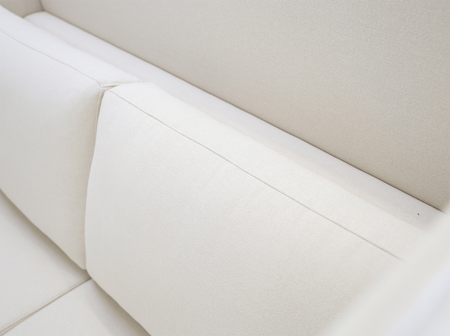 Assise en mousse haute résilience avec une densité de 30 kg / m3 posée sur des sangles entrecroisées élastiques.