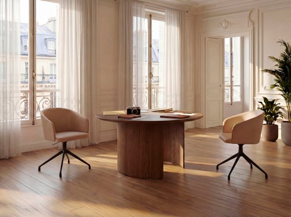 L’association du style design et de l’influence vintage pour la chaise de bureau Oscar. Le dossier enveloppant, les lignes douces et épurées de la chaise Eora déclinée en version chaise de bureau avec et sans roulettes.