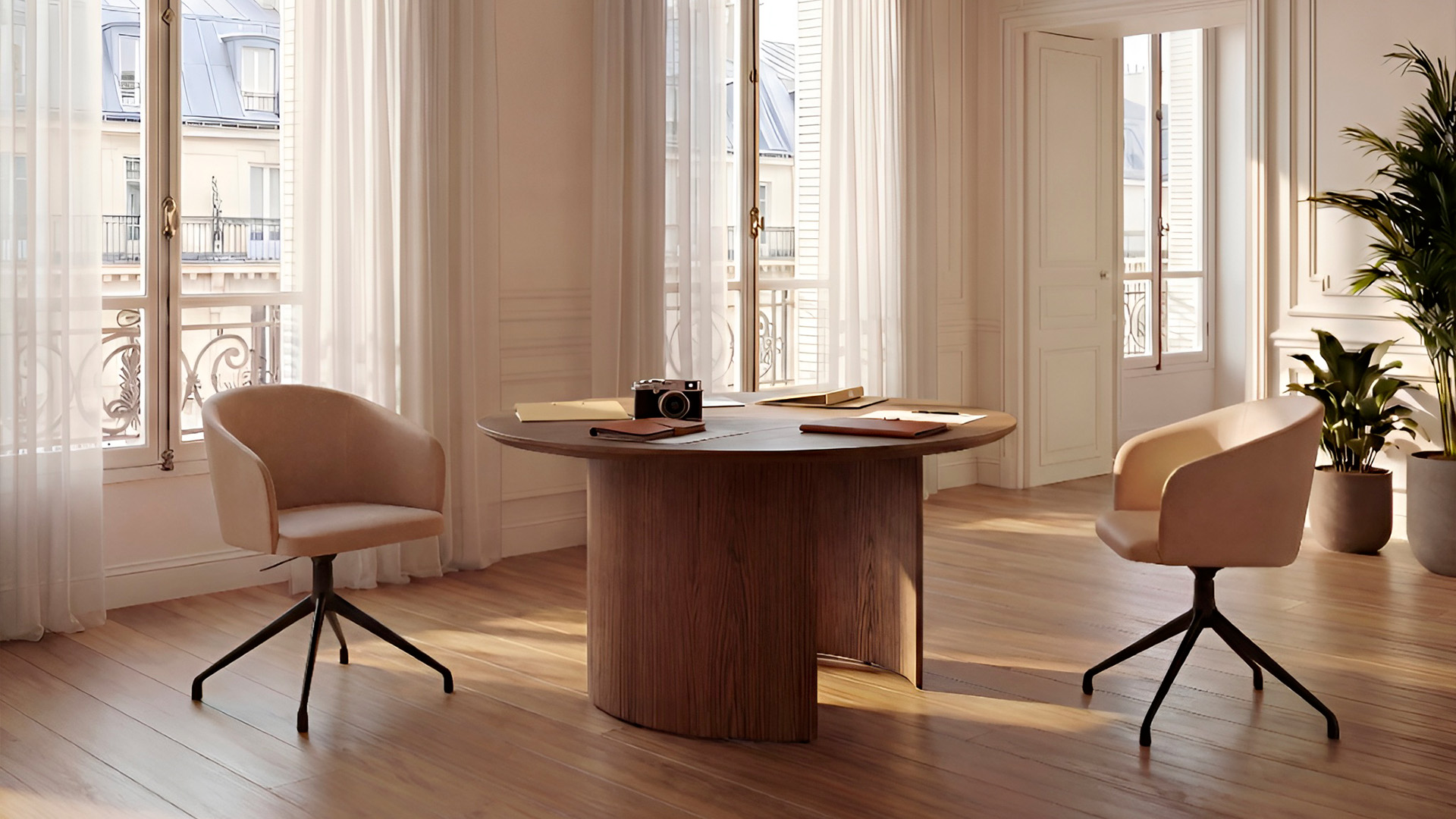 L’association du style design et de l’influence vintage pour la chaise de bureau Oscar. Le dossier enveloppant, les lignes douces et épurées de la chaise Eora déclinée en version chaise de bureau avec et sans roulettes.