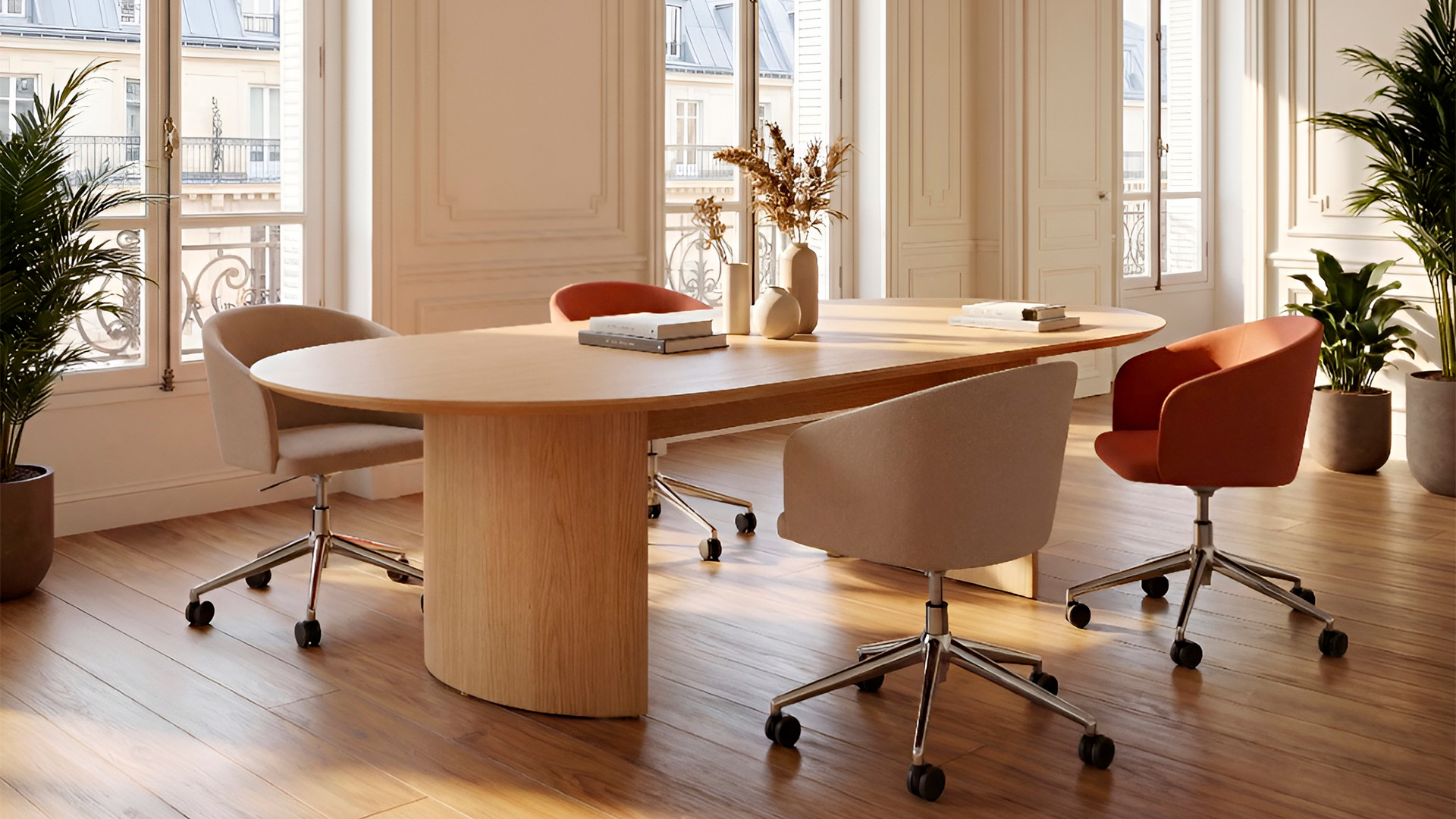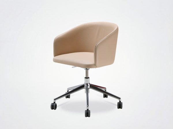 L’association du style design et de l’influence vintage pour la chaise de bureau Oscar. Le dossier enveloppant, les lignes douces et épurées de la chaise Eora déclinée en version chaise de bureau avec et sans roulettes.