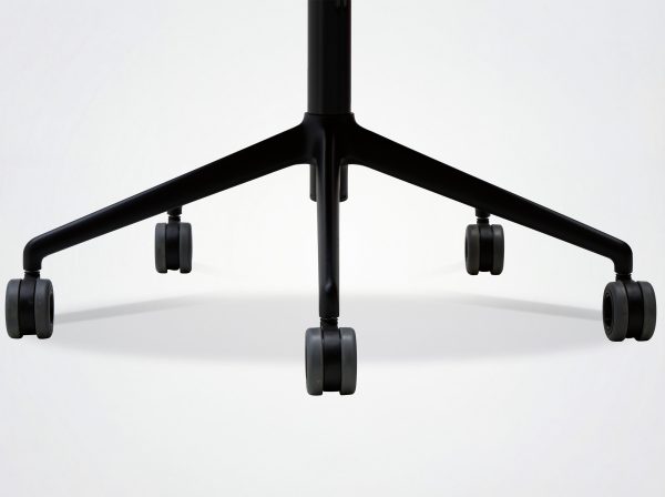 Piétement 5 branches en aluminium avec roulettes.