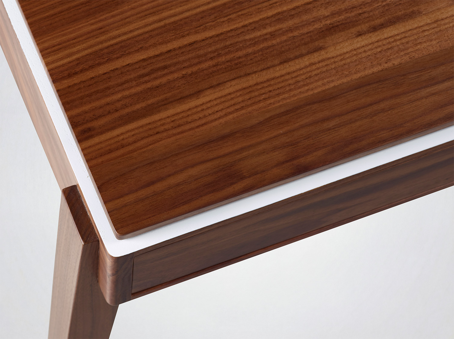 Panneau du dessus, piétements, tablettes, traverses, façades de tiroirs en bois massif.