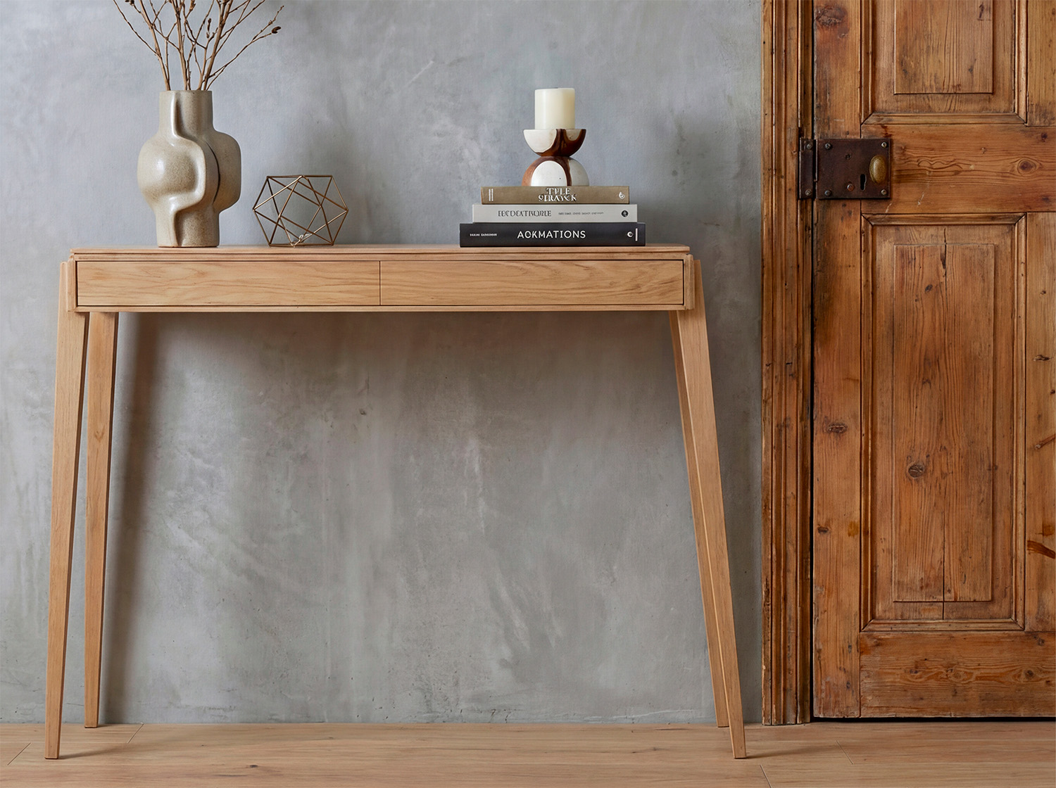 La console Liseré est une création signée Julie Gaillard. Disponible en deux essences de bois, avec un plateau en bois, cette console se décline en deux longueurs différentes. Compacte, elle est équipée d’un ou deux tiroirs ce qui en fait le choix idéal pour organiser un espace.