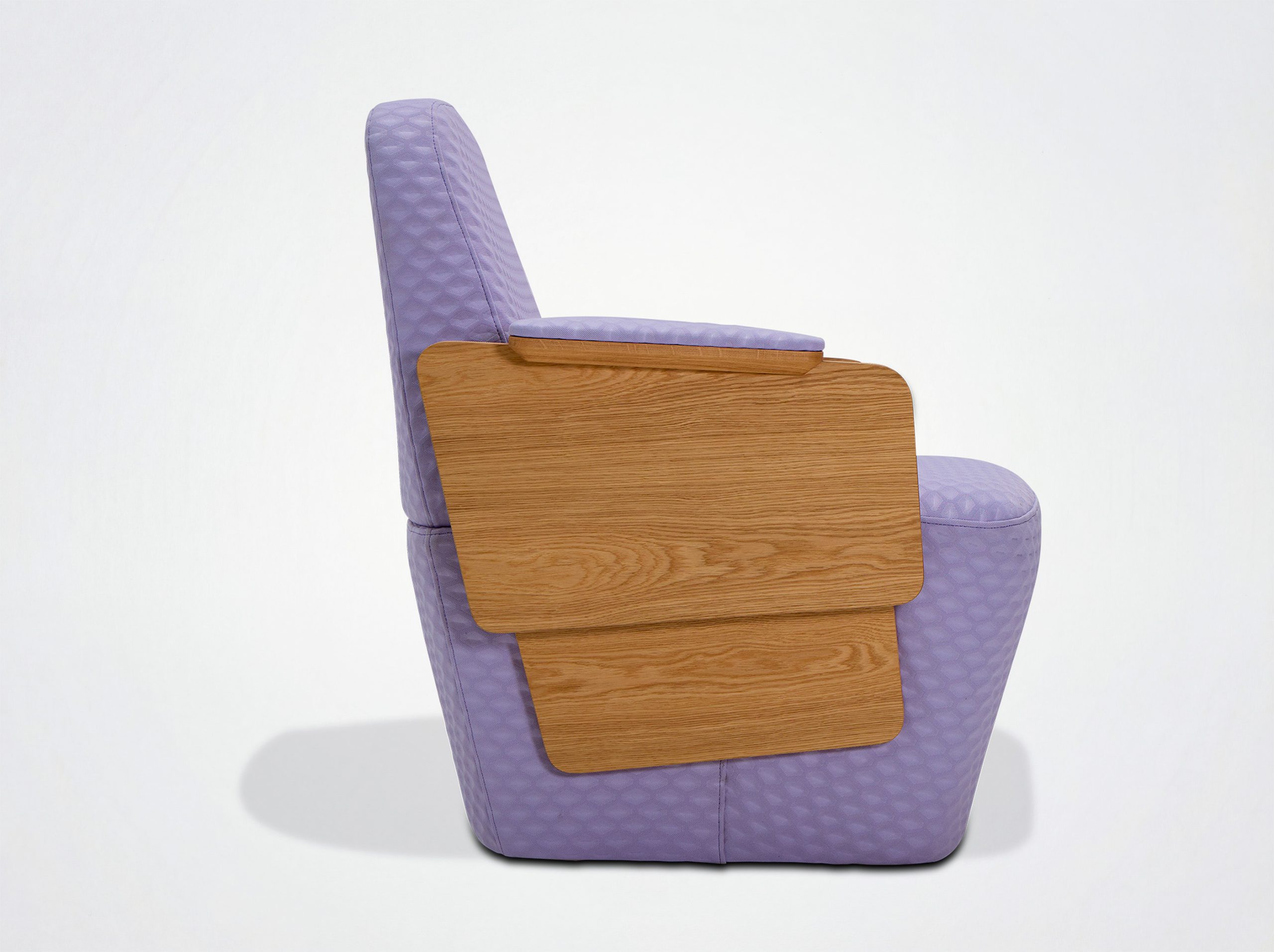 Le système constructif et graphique de la collection Volute a été adapté pour des tables, tables basses et un fauteuil orienté vers l’univers Contract. Le fauteuil Volute allie l’élégance du bois et le confort d’une assise en tissu. Il se distingue par deux lames de bois intégrées aux accoudoirs, offrant ainsi une esthétique moderne et chaleureuse. Parfait pour accueillir les visiteurs dans les espaces d’attente, de réception ou de détente, ce fauteuil vous permet de créer un espace accueillant et élégant.