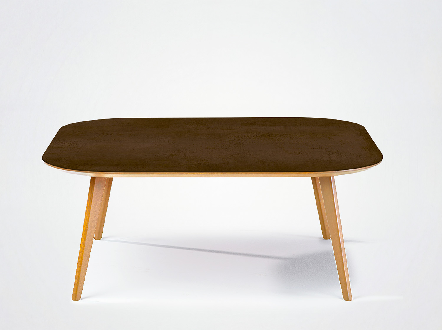 Pieds en bois massif, plateau avec chant aile d’avion (M5).