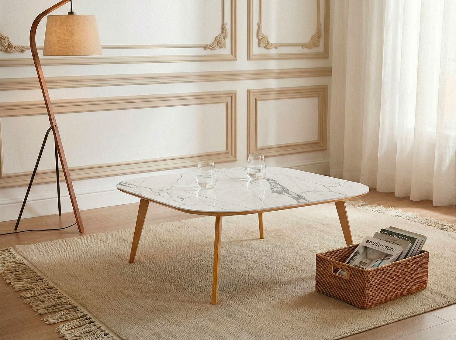 | Table basse carré angles arrondis Léon H30 plateau céramique F2 | |