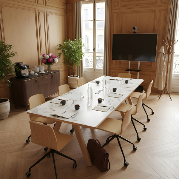 La table Chevron est une création remarquable du designer Guillaume Delvigne, inspirée par les éléments de la charpenterie. Disponible en plusieurs dimensions et finitions, cette table incarne l’esthétique et la fonctionnalité que ce soit comme table de salle à manger, table de cuisine ou table de réunion / travail.
