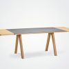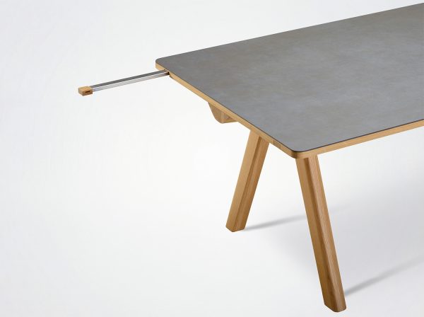 La table extensible Chevron est une création du designer Guillaume Delvigne, inspirée des éléments de charpenterie. Disponible en plusieurs dimensions et finitions. En table de salle à manger, table de cuisine ou table de travail / réunion, la table Chevron allie un design élégant à une importante polyvalence.