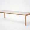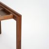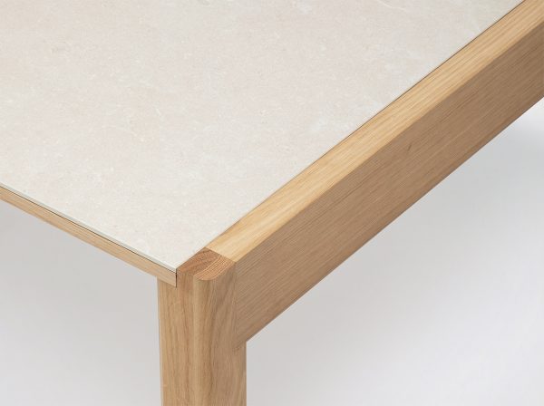 Pour la collection Rive, les idées du studio se sont naturellement orientées vers la mise en valeur du travail du bois, notamment au niveau de la structure et du piètement de la table. L’un des principaux défis techniques ; les assemblages à la fois subtils et complexes entre les pieds et la traverse, qui se fondent harmonieusement à chaque bout de table. C’est un élément clé dans le design de la collection, il apporte une cohérence esthétique tout en garantissant la solidité nécessaire à la structure.