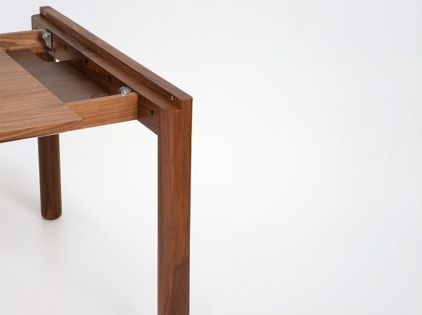 Pour la version extensible, il a fallu concilier le poids de la structure en bois massif avec la nécessité de rendre le système de déploiement des allonges facile et intuitif. Un défi double : garantir la stabilité de la table tout en permettant une manipulation aisée et fluide des allonges. Cela a nécessité une réflexion minutieuse sur les mécanismes d’extension, afin que chaque table offre une expérience utilisateur pratique et un design soigné.