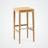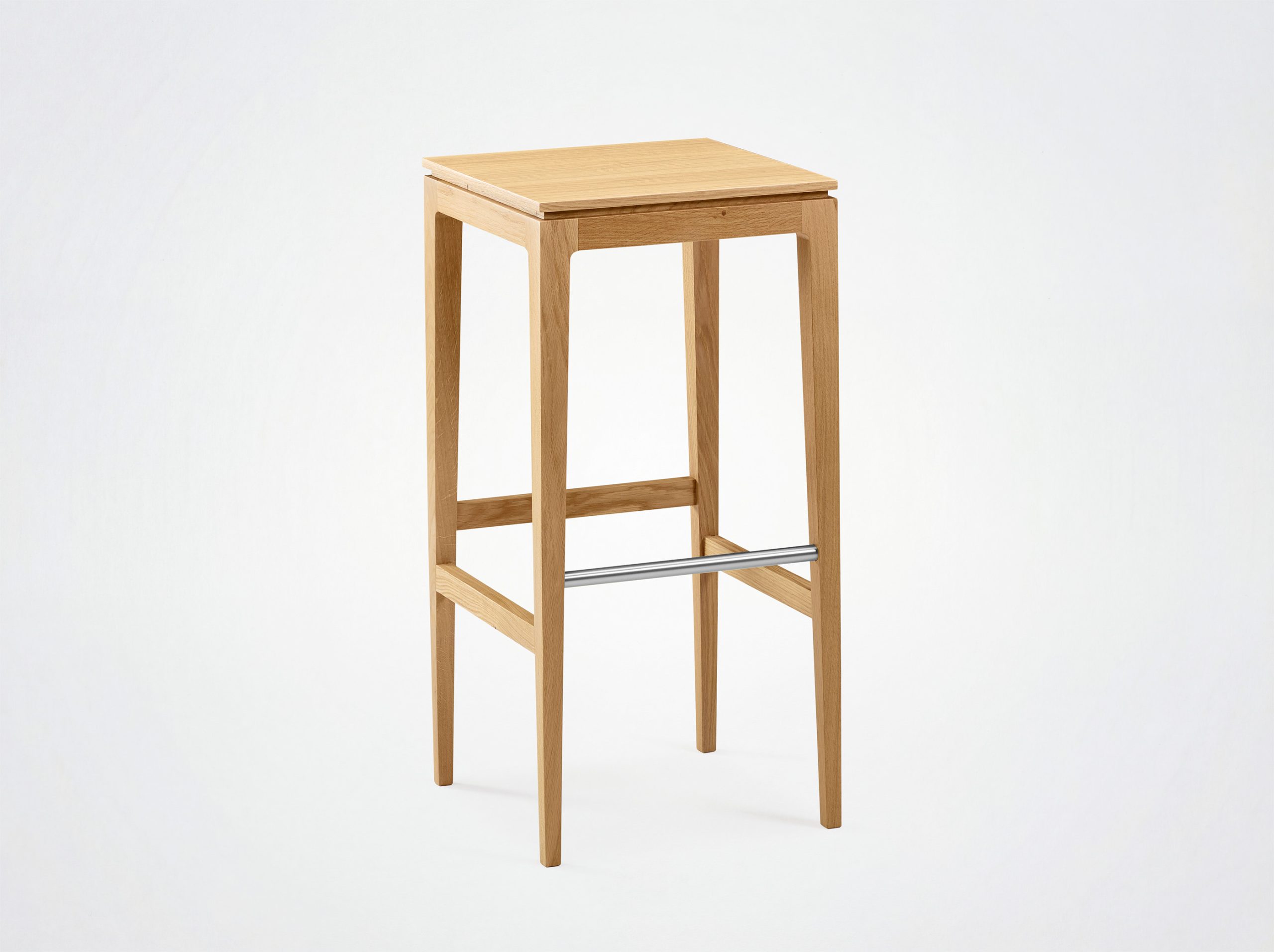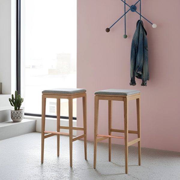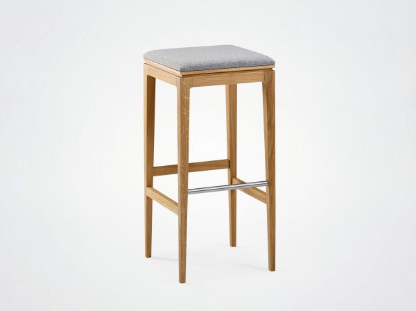 Ce tabouret d’une hauteur de 80 cm est disponible en deux essences de bois, avec la possibilité de choisir entre des sièges en bois ou en tissu de qualité. Il s’intègre parfaitement dans divers espaces, que ce soit autour d’un bar, d’un îlot de cuisine ou comme siège d’appoint autour d’une table haute.